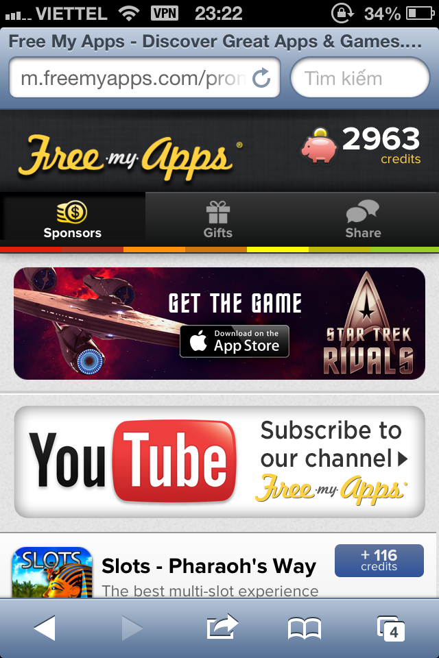 Ấn vào chữ Get it, nó sẽ nhảy tới appstore, bạn down app đó về, chạy app khoảng 30s, xong thoát ra, vào lại FreeAppParty.